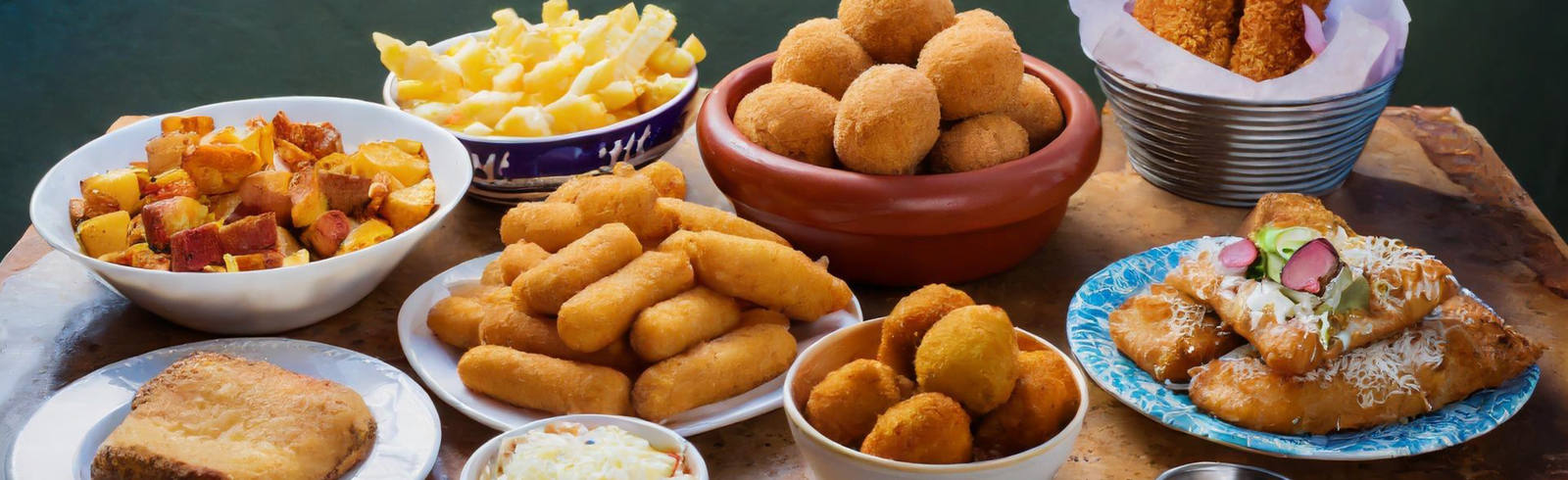 - Las frituras tradicionales: nuggets, croquetas, patatas fritas, rollitos de primavera, empanadillas, buñuelos de bacalao, filetes de pescado empanados y sardinas.