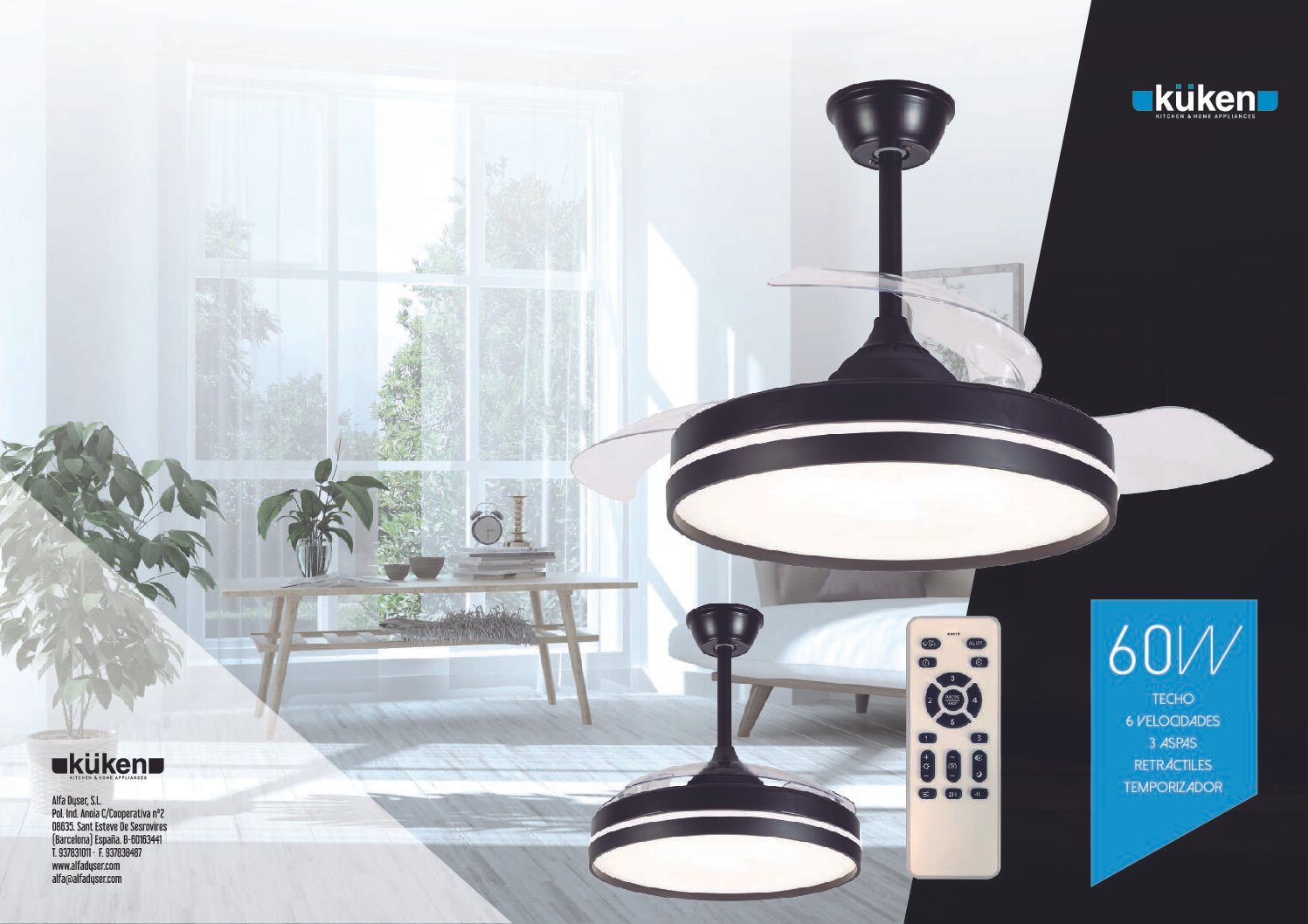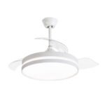 Diseño elegante y funcional con aspas retráctiles. Luz LED regulable, motor silencioso, mando a distancia y función reversible para todo el año.