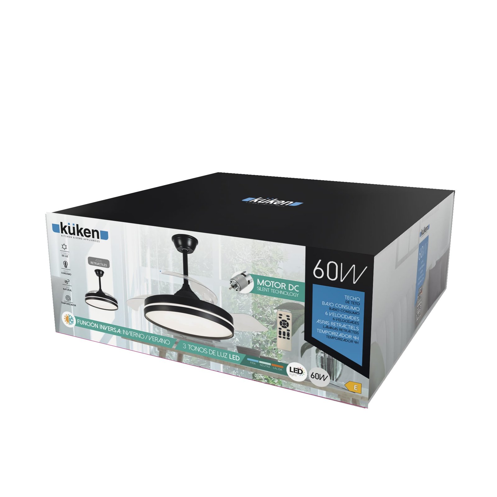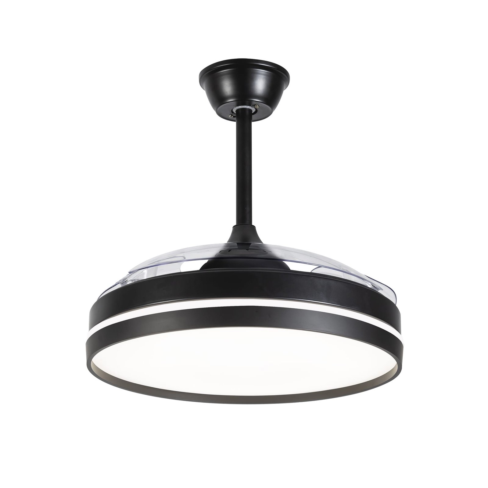 • Ventilador LED negro con aspas retráctiles transparentes (3 abiertas / cerradas).