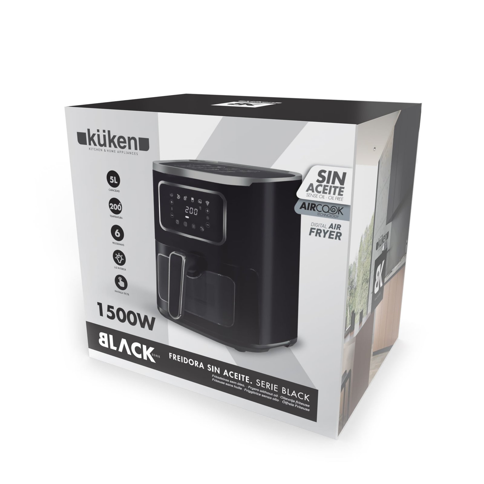 KÜKEN ÖLFREIE DIGITALE FRITTEUSE 5 LITER SCHWARZ MIT SICHTFENSTER 1500W KÜKEN