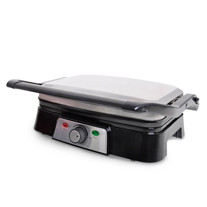 Prepara sándwiches, carnes o verduras con esta sandwichera grill de apertura 180°. Con control de temperatura y superficie resistente y antiadherente.