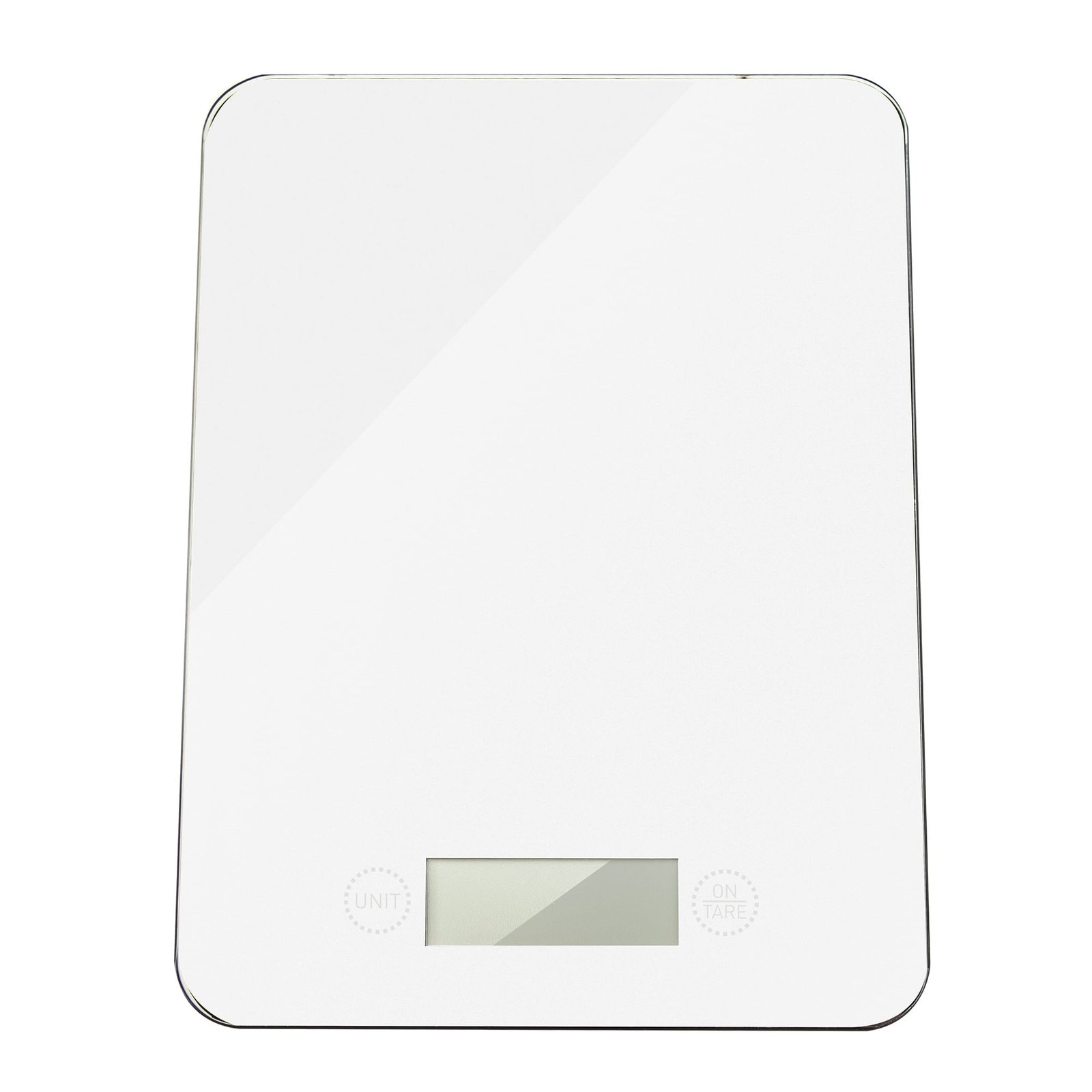 Balanza digital moderna con diseño en cristal templado blanco. Compacta, precisa y fácil de usar, ideal para cocinar con exactitud y estilo.