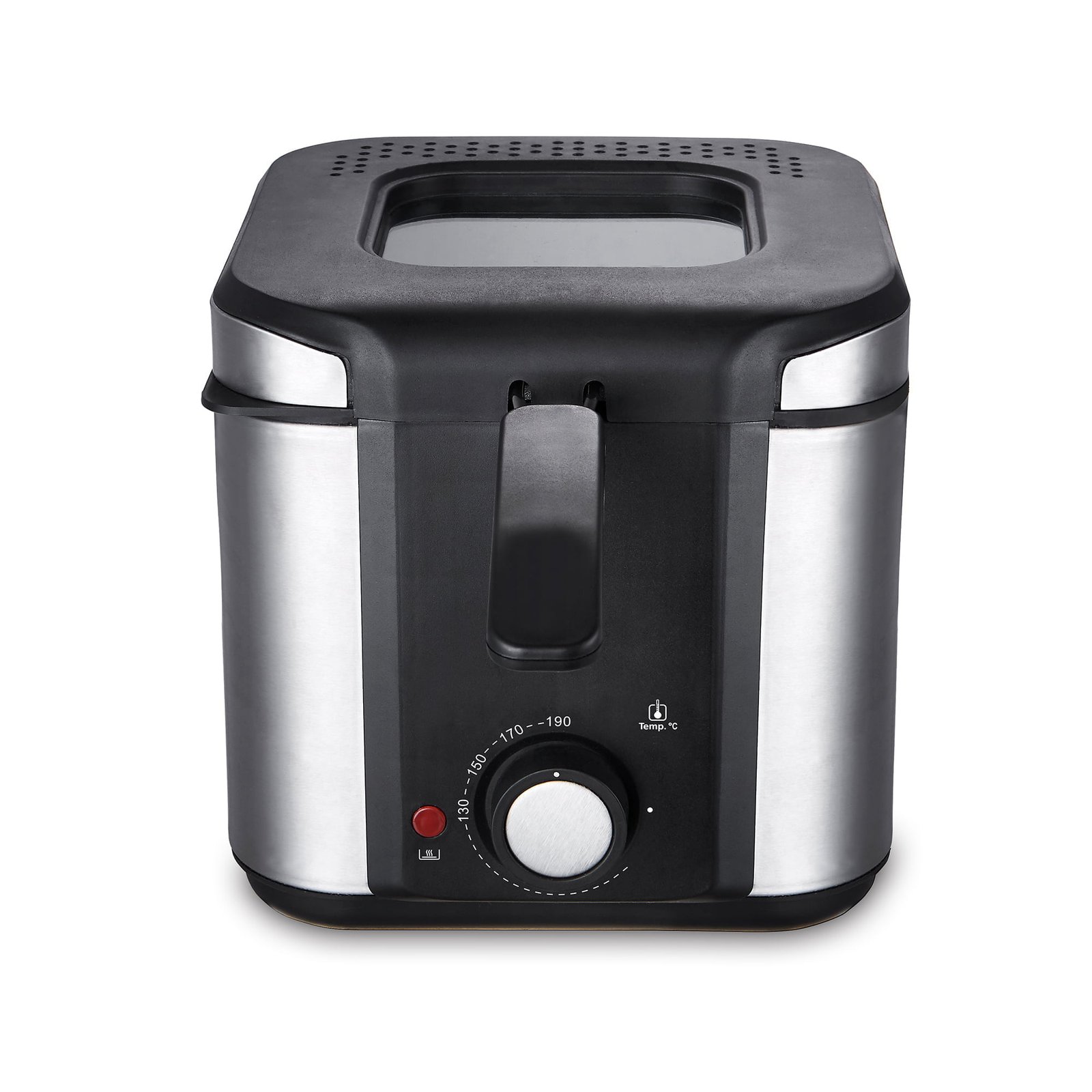 Freidora práctica y compacta con visor de cristal, control de temperatura y diseño en acero inox. Ideal para preparar frituras rápidas con total seguridad.