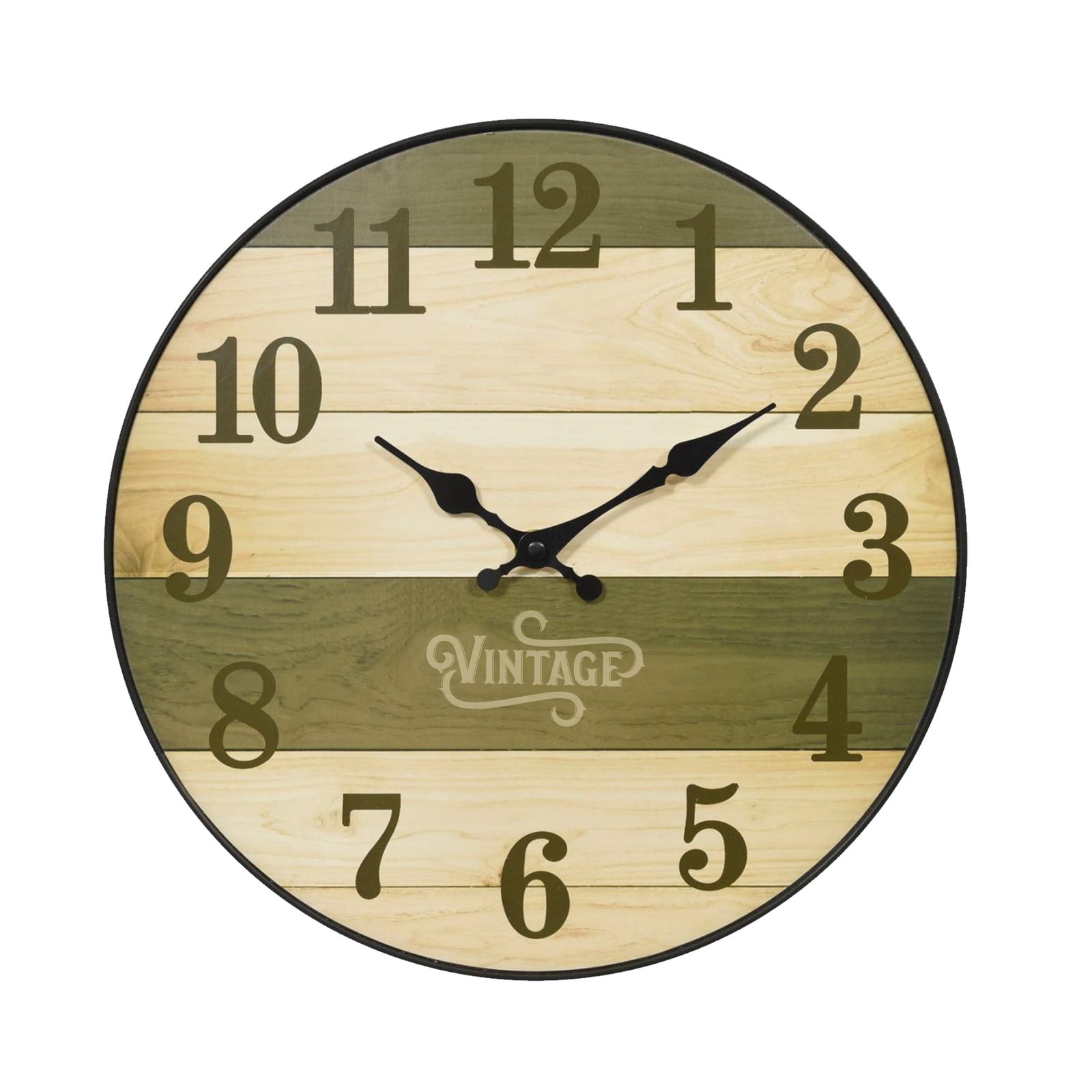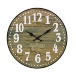 Reloj decorativo redondo con diseño clásico y acabado natural.