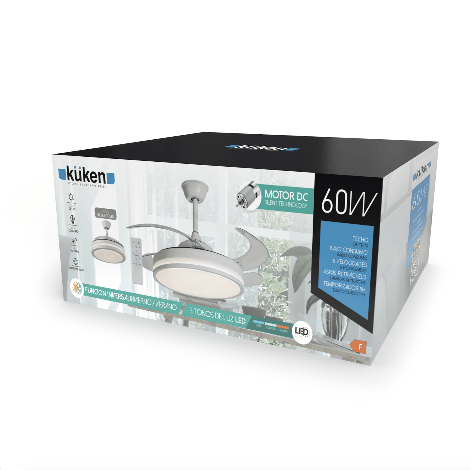 Ventilez et éclairez avec style. Avec ses pales rétractables, son éclairage LED réglable et son moteur silencieux, ce ventilateur est parfait pour toute l'année et pour tout espace moderne.