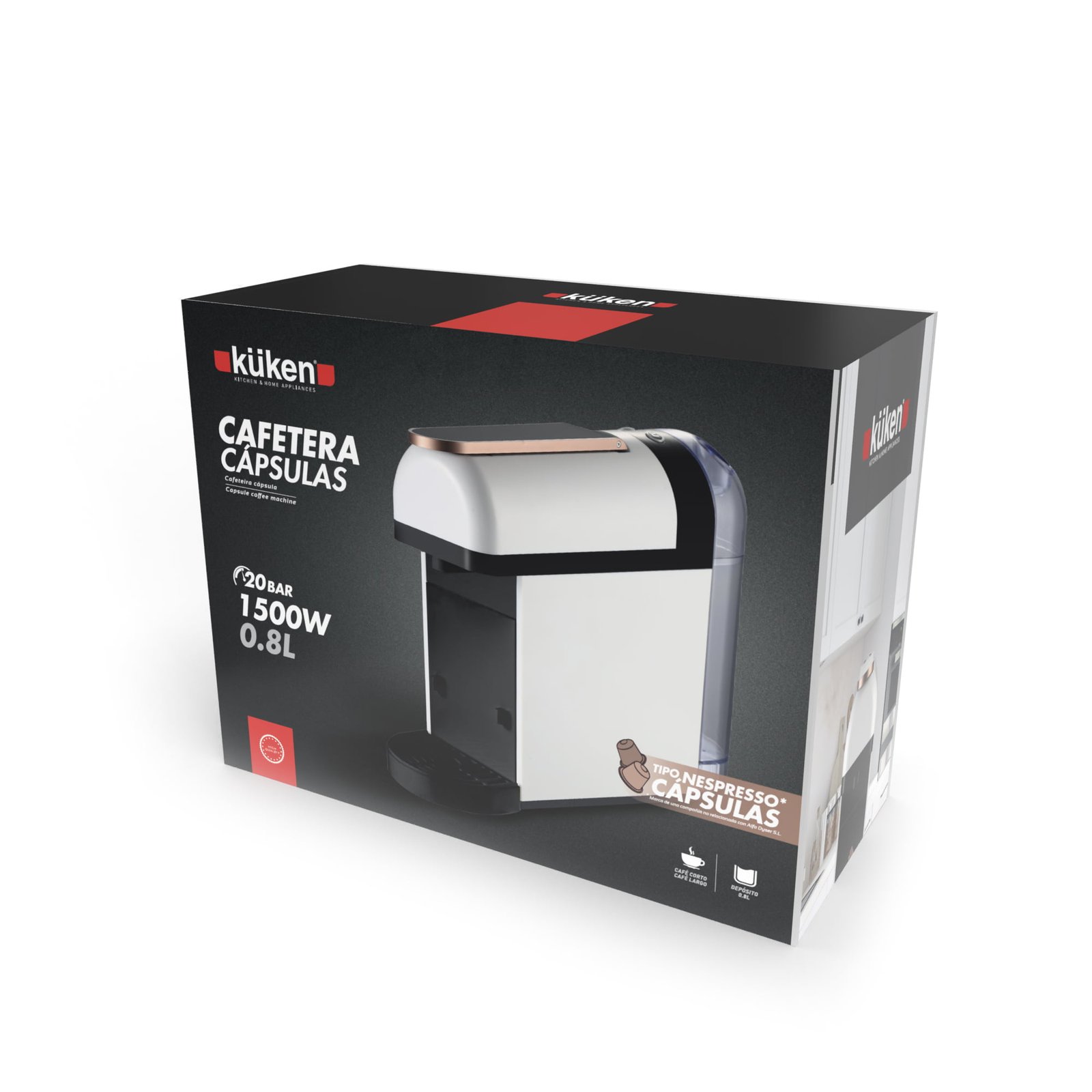 CAFETERA CÁPSULAS 20 BARES 1500W KUKEN