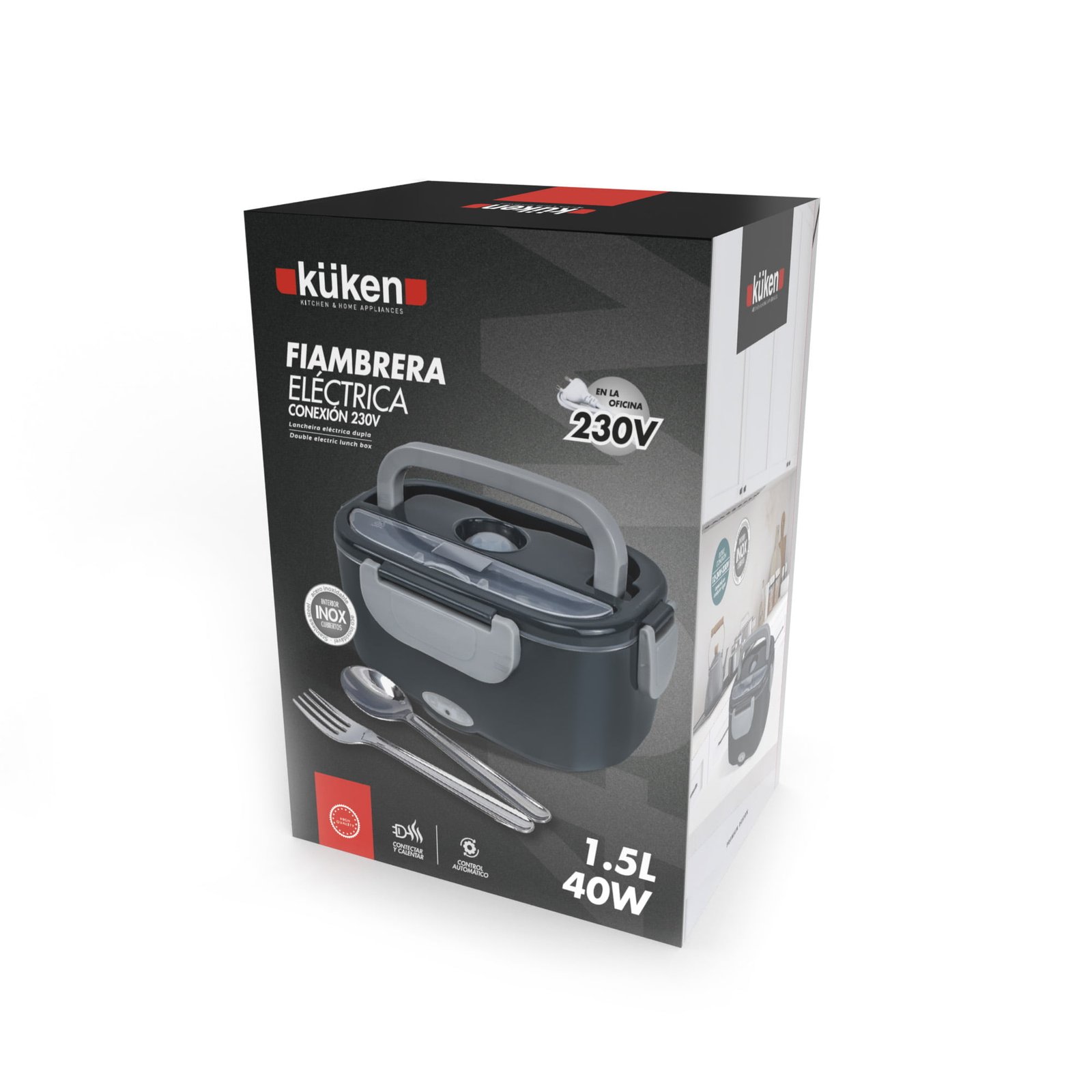 Calienta tus comidas en cualquier lugar. Esta fiambrera eléctrica combina materiales seguros, sistema hermético y doble recipiente para un uso cómodo y eficiente.